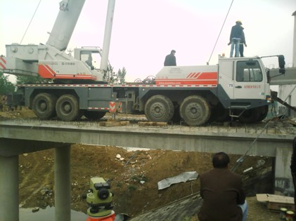 2011年5月22日下午6點(diǎn)30分,定廟橋的最后一片空心板梁順利吊裝到位,這標(biāo)志著該橋的主體工程已基本完成。