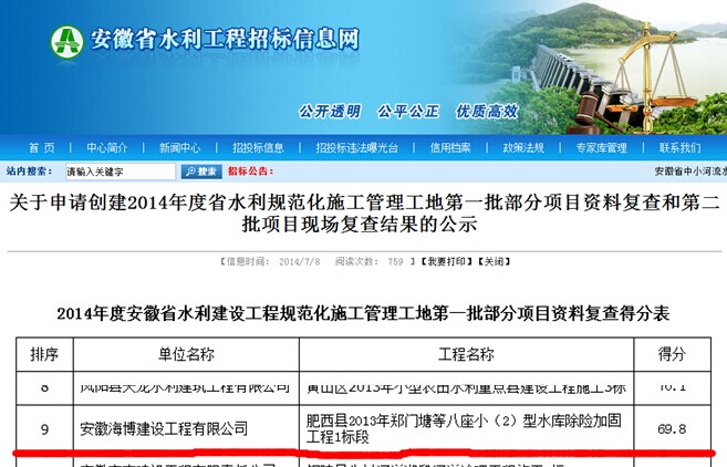 同時按照《安徽省水利建設工程規范化施工管理工地評選辦法》(皖水行協[2014]6號)的要求,安徽省水利水電行業協會施工企業分會組織了復查組,對第一批通過現場復查且于6月30日前完工的16個項目的工程資料、現場管理等方面,進行了復查,對第一批16個項目的工程資料進行了賦分。肥西縣2013年鄭門塘等小(2)型水庫除險加固工程1標段順利通過了復查。