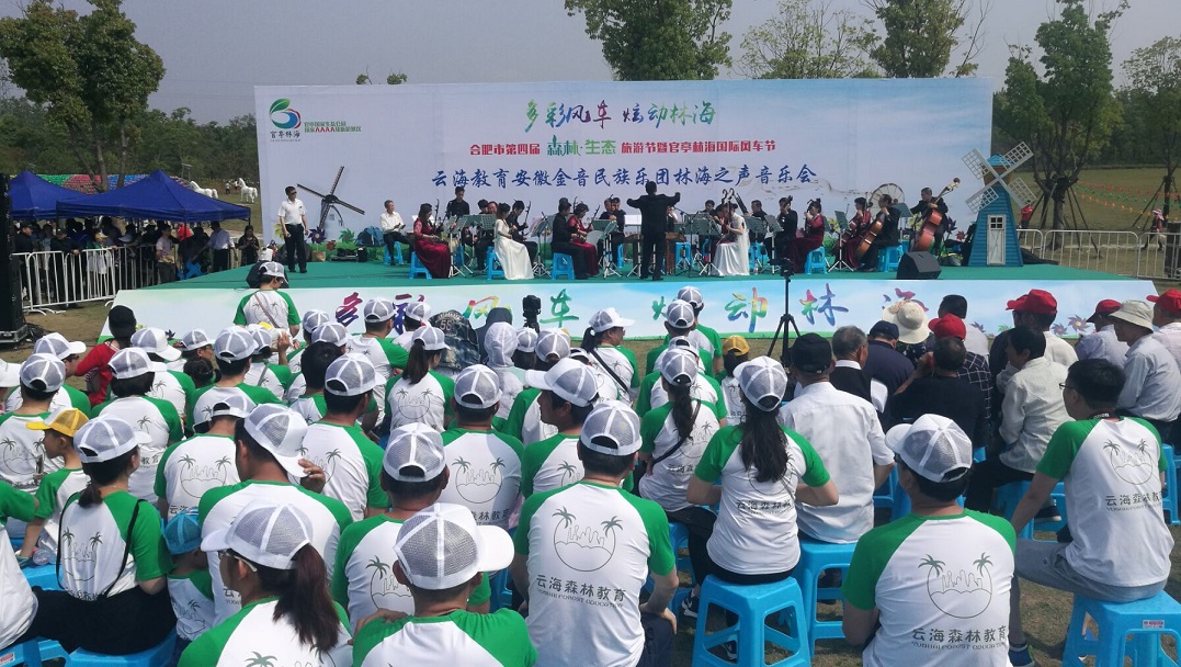 活動首先是欣賞集團云海教育板塊為合肥市第四屆森林·生態(tài)旅游節(jié)暨官亭林海風車節(jié)精心呈現(xiàn)的云海教育安徽金音民族樂團林海之聲音樂會,不僅有云海教育的老師們載歌載舞,還邀請了眾多民間藝術(shù)家為本次音樂會增光放彩。