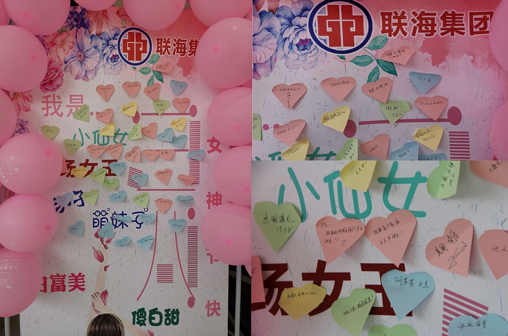 “小驚喜”過后,女神們紛紛在海報上貼上了可愛的標簽及祝福語:小仙女,萌妹子,白富美,職場女王,健康生活、快樂工作,聯(lián)海集團越來越好,集團發(fā)展蒸蒸日上等。一張張愛心標簽充分展現(xiàn)了自己的獨特風貌和對集團的美好祝福。