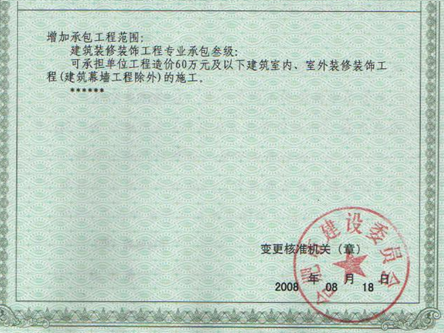 我公司新增裝飾裝修專業承包三級資質獲得批準