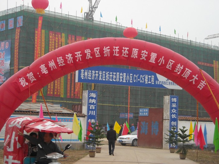 9月9日上午,金秋送爽、丹桂飄香,紅旗招展、鞭炮齊鳴,值國際(亳州)中醫(yī)藥博覽會暨第25屆全國(亳州)中藥材交易會隆重召開之際;我司承建的亳州經(jīng)濟技術(shù)開發(fā)區(qū)拆遷還原安置小區(qū)C1~C5#樓工程順利封頂。
